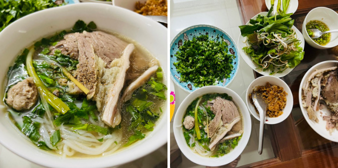 Phở bò có hương vị thơm ngon. Nước dùng có vị ngọt của xương bò, đậm đà, mùi chanh, các loại rau củ mềm, giữ được độ tươi ngon, thịt được ninh mềm, không dai. Món ăn trở nên ngon hơn khi ăn nóng với một số loại rau sống như đậu, xà lách, rau thơm...
