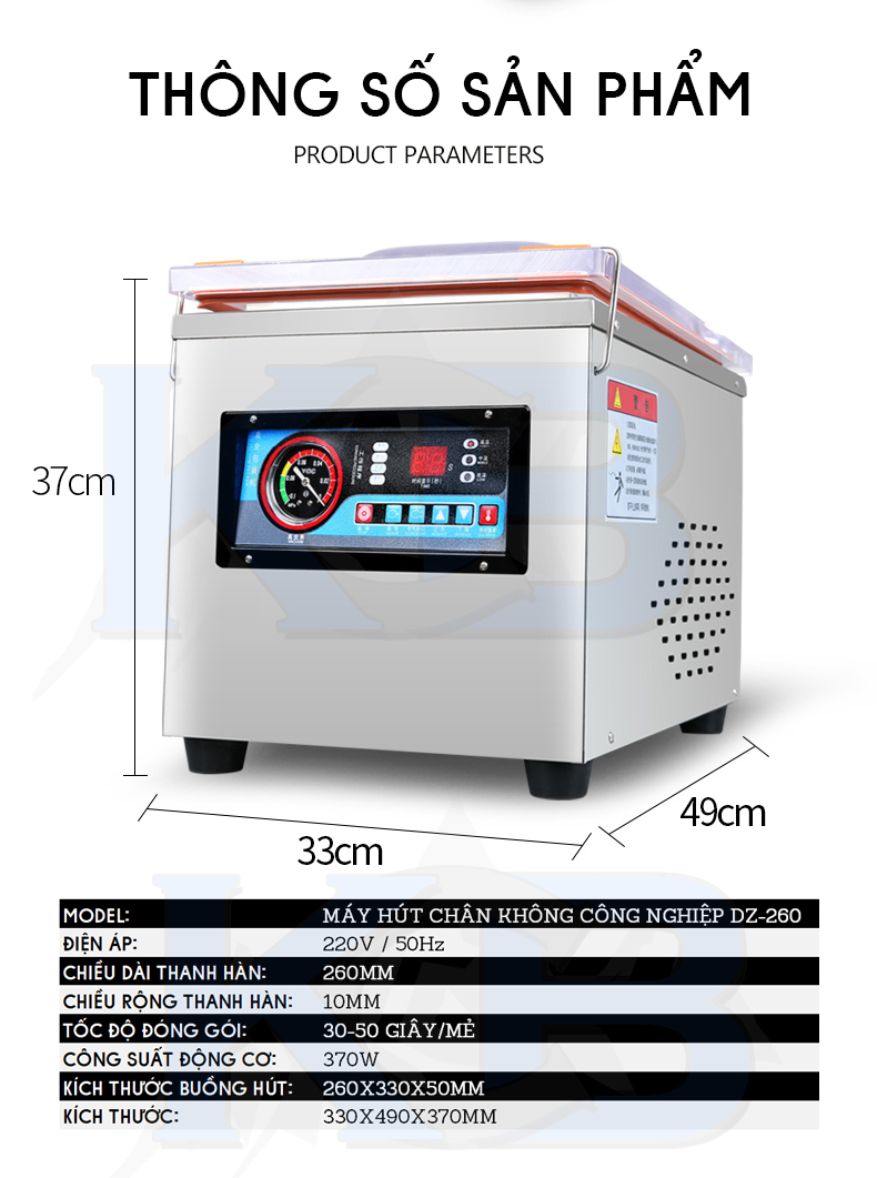 DZ 260B giúp bảo quản các sản phẩm của mình được an toàn hơn, tươi mới hơn và bền hơn. Công suất máy là 370W, cho phép máy hoạt động mạnh mẽ, bền bỉ trong thời gian dài mà không làm ảnh hưởng đến năng suất công việc.