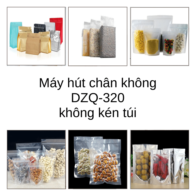 1. Máy không kén túi hút: hút hàn miệng túi cho các loại túi hút chân không 2 mặt trơn, túi zip, túi bạc, túi nhôm, túi âm dương,…
