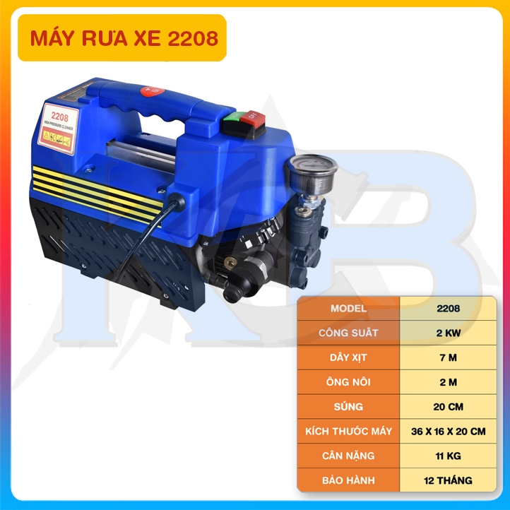 Máy rửa xe 2208 : thiết kế nhỏ gọn, công suất motor 2kw phù hợp cho gia đình và các cơ sở kinh doanh nhỏ.