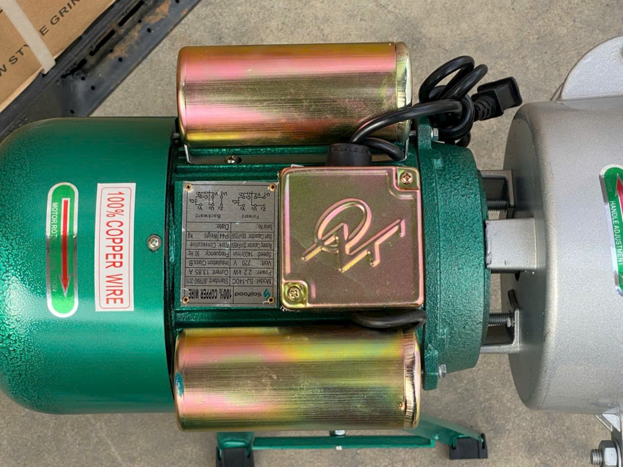 - Máy hoạt động với nguồn năng lượng điện 220V-50Hz rất tiện dụng, Motor được cuốn bằng đồng nguyên chất, công suất 2.2kw, số vồng quay 14000 vòng trên phút cho hiệu suất nghiền cao.