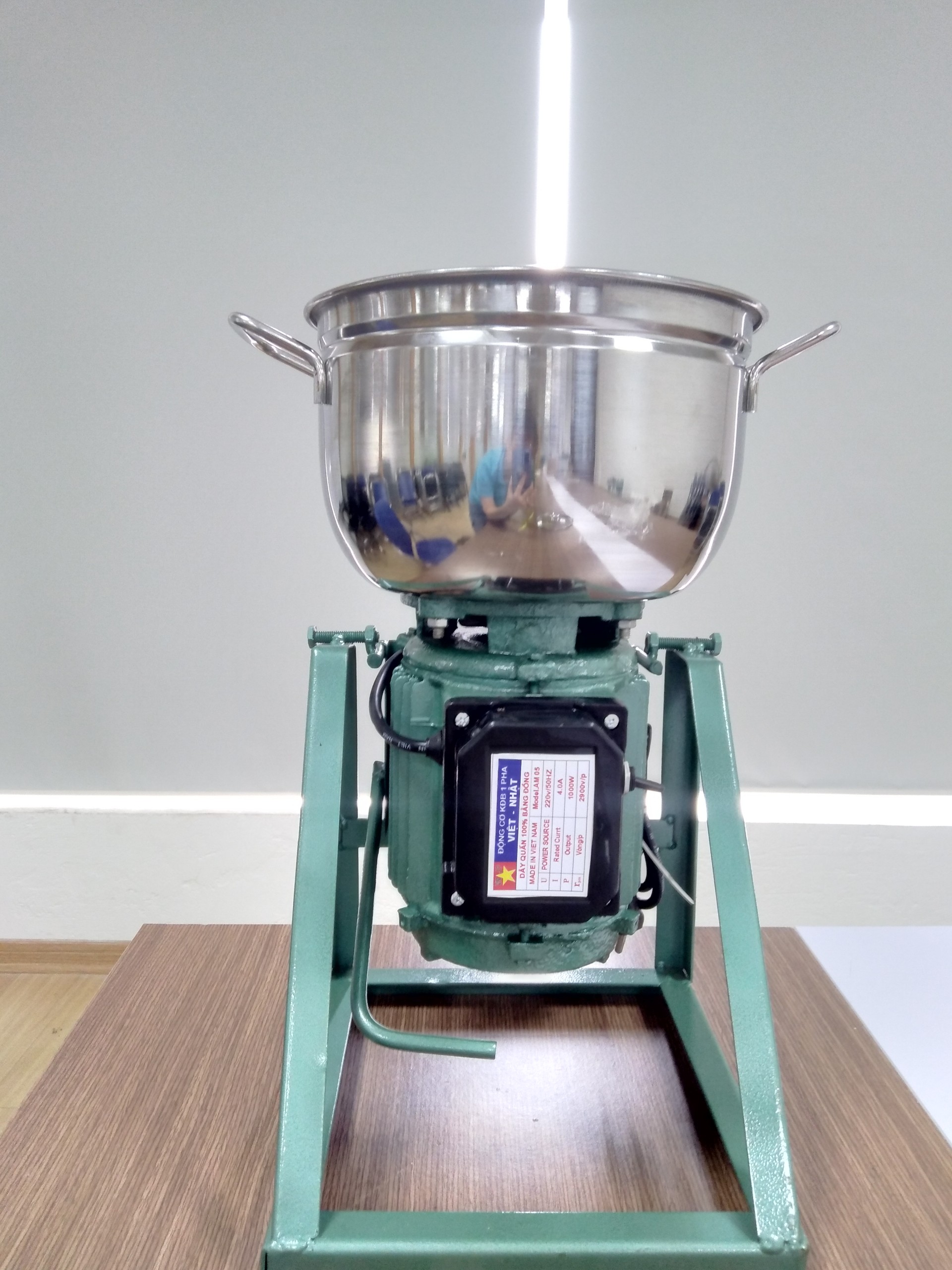 - Máy hoạt động bằng điện dân dụng 220V/ 50HZ ,công suất 1000W với tốc độ quay 2900V/phút,có năng suất 0.5 – 2kg/ mẻ.