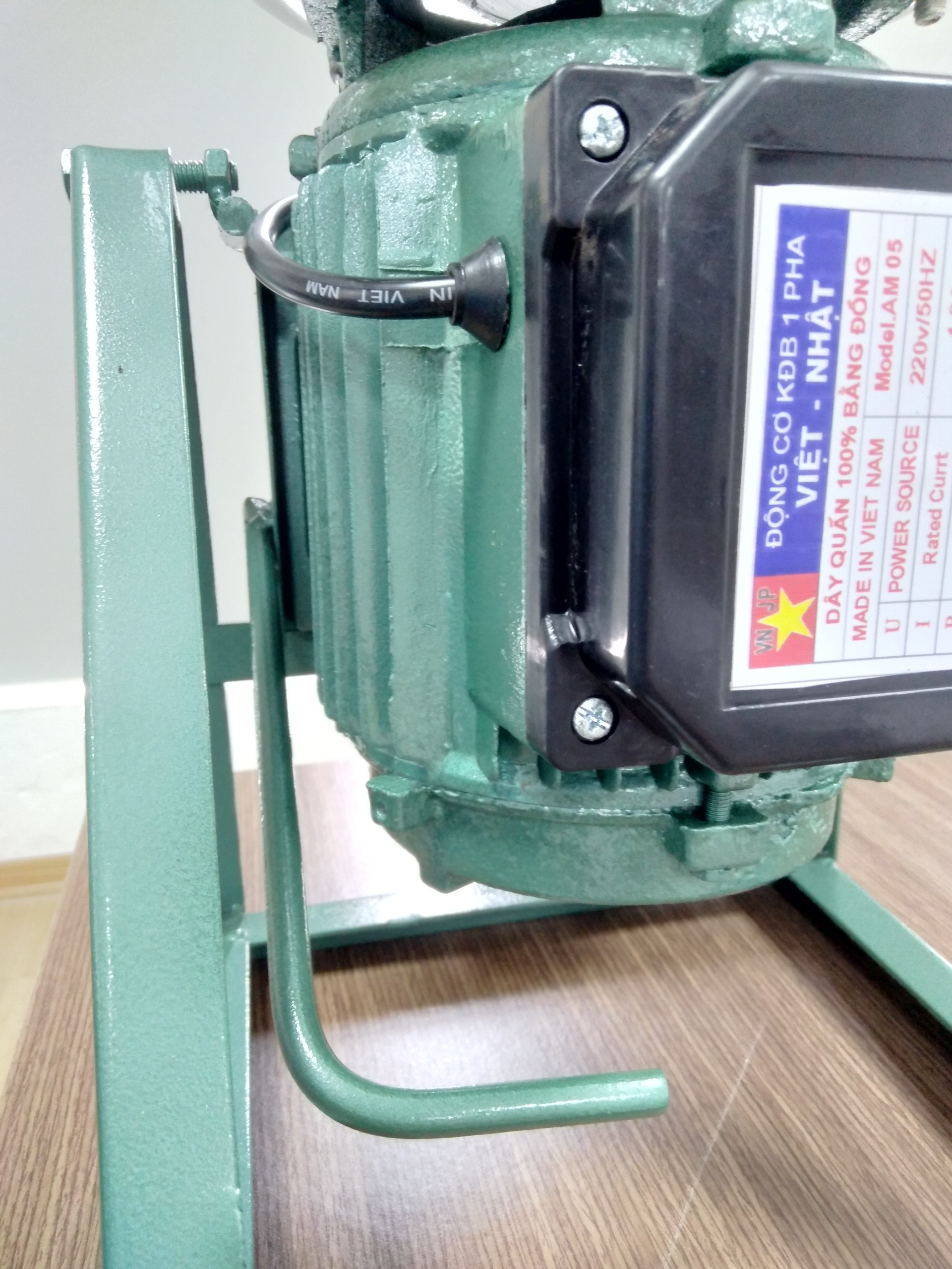 - Máy hoạt động bằng điện dân dụng 220V/ 50HZ ,công suất 750W với tốc độ quay 2900V/phút,có năng suất 0.5 – 2kg/ mẻ.