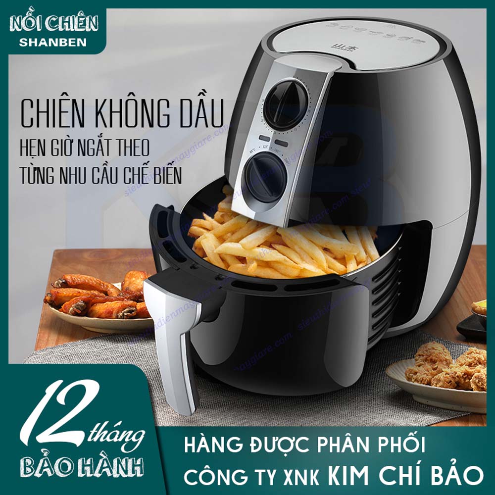 TÍNH NĂNG SẢN PHẨM Công nghệ Rapid Air cho những món chiên lành mạnh Nồi chiên không khí airfryer cho phép bạn rán, nướng bánh, nướng và quay, chuẩn bị những món ăn ngon nhất và ít chất béo hơn so với nồi chiên thông thường, bằng việc sử dụng ít dầu hoặc không có dầu. Đồng thời, công nghệ Rapid Air cũng tạo ra ít mùi hơn so với nồi chiên thông thường, nồi dễ vệ sinh, an toàn và tiết kiệm cho việc sử dụng hàng ngày. Điều chình thời gian và nhiệt độ Nồi chiên chân không ShanBen với chức năng hẹn giờ tích hợp cho phép bạn đặt sẵn thời gian nấu lên đến 30 phút. Chức năng tự động tắt có cả chỉ báo âm thanh "sẵn sàng". Núm điều chỉnh nhiệt độ cho phép bạn đặt trước nhiệt độ nấu ăn phù hợp với thức ăn,với nhiệt độ lên đến 200 độ giúp bạn thưởng thức những miếng rán giòn, vàng ươm, món ăn nhanh, gà, thịt và nhiều món khác - tất cả đều được chế biến với thời gian và nhiệt độ phù hợp để cho kết quả tốt nhất.