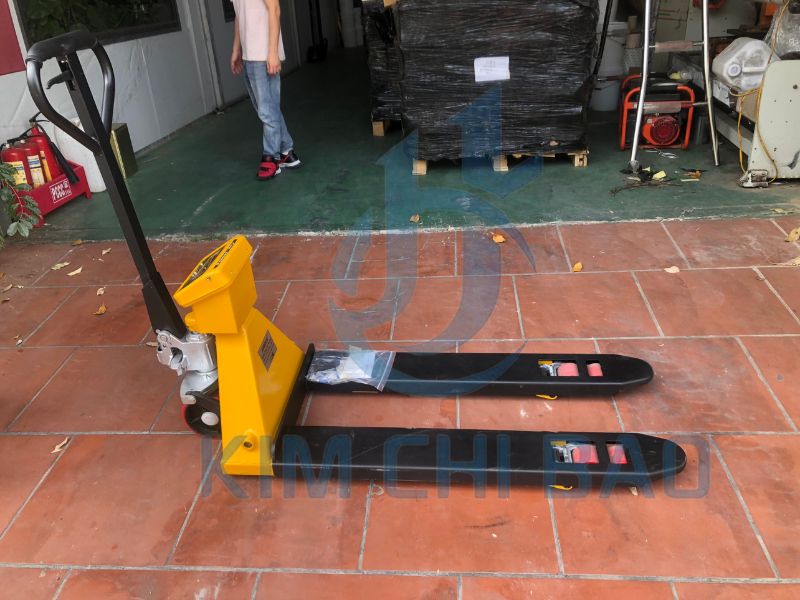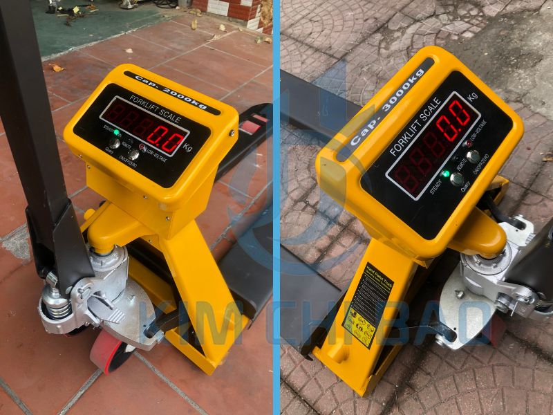 Khi cần kiểm tra trọng lượng, cân điện tử tích hợp sẽ tự động đo lường khi hàng hóa được đặt lên càng nâng.